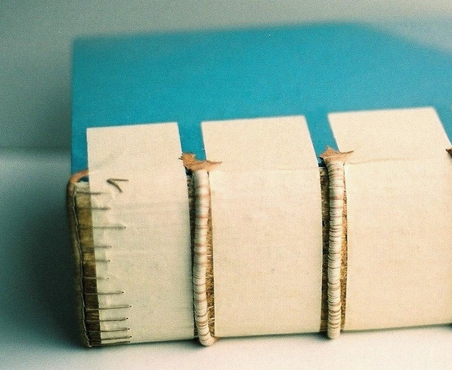 A book is an object whose mechanism must "work"; therefore, the bookbinding process should not be haphazard, accidental, or capricious. When the book lies open on a flat surface, its pages must rest on the covers on both sides. This depends on the quality of the paper, good stitching, and a space between the book block and the spine that provides flexibility to the spine, which is the book's true hinge. The stitching of the signatures should allow the book to open effortlessly; a book with loose, glued pages will never open comfortably. On the other hand, if the endpaper is not tightly fitted to the cardboard hinge, it will pull on the first few pages, tearing the signatures and exposing the stitching.