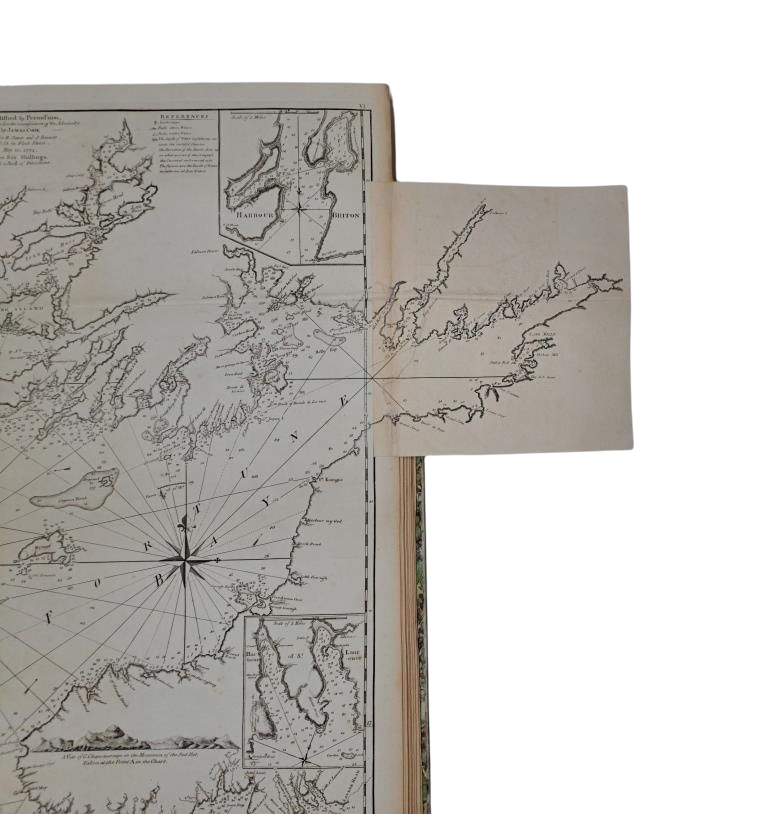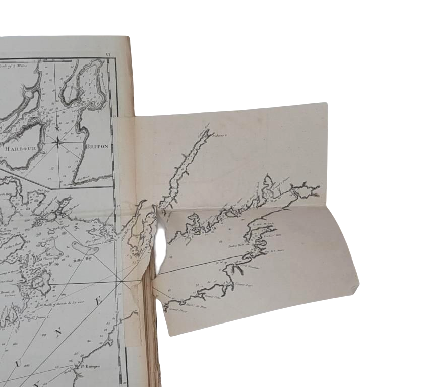 However, these are not land maps, but rather a navigational chart of the entire North American east coast, from Newfoundland to the West Indies, compiled by Captain and explorer James Cook (1728–1779), along with other cartographers such as Michael Lane, Joseph Gilbert, John Gascoigne, Joshua Fisher, and Jacob Blamey. The 36 maps were engraved on copper plates by geographer Thomas Jefferys (1719–1711). Printing took place in London at the renowned Fleet Street printing house of Robert Sayer (1725–1794), who was associated with John Bennett during those years. Among the most notable publications from Sayer's press were the works of mathematician and cartographer Samuel Dunn, the almost complete reproduction of Hogarth's paintings, and, of course, *The North American Pilot*, first printed in 1775.