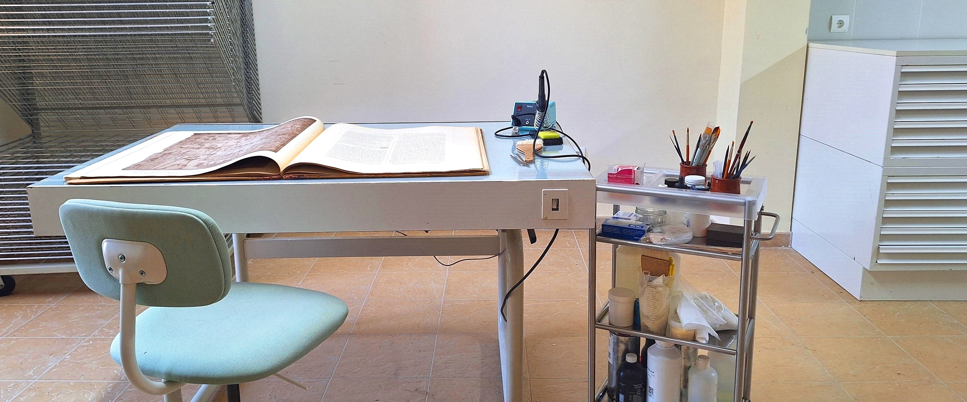Mar Núñez Díaz-Corralejo holds degrees in Humanities and in Conservation and Restoration of Cultural Heritage, specializing in Graphic Documents. She has received grants to study at the Reina Sofía National Museum, the Naval Museum of Madrid, and the Faculty of Fine Arts in Warsaw. In her bookbinding and graphic document restoration studio, she has worked for, among other institutions, the Comillas Pontifical University, the Autonomous University of Madrid, the Higher Technical School of Civil Engineers, the Hispano-Arabic Library of Madrid, and the Archives of the Presidency of the Government.
