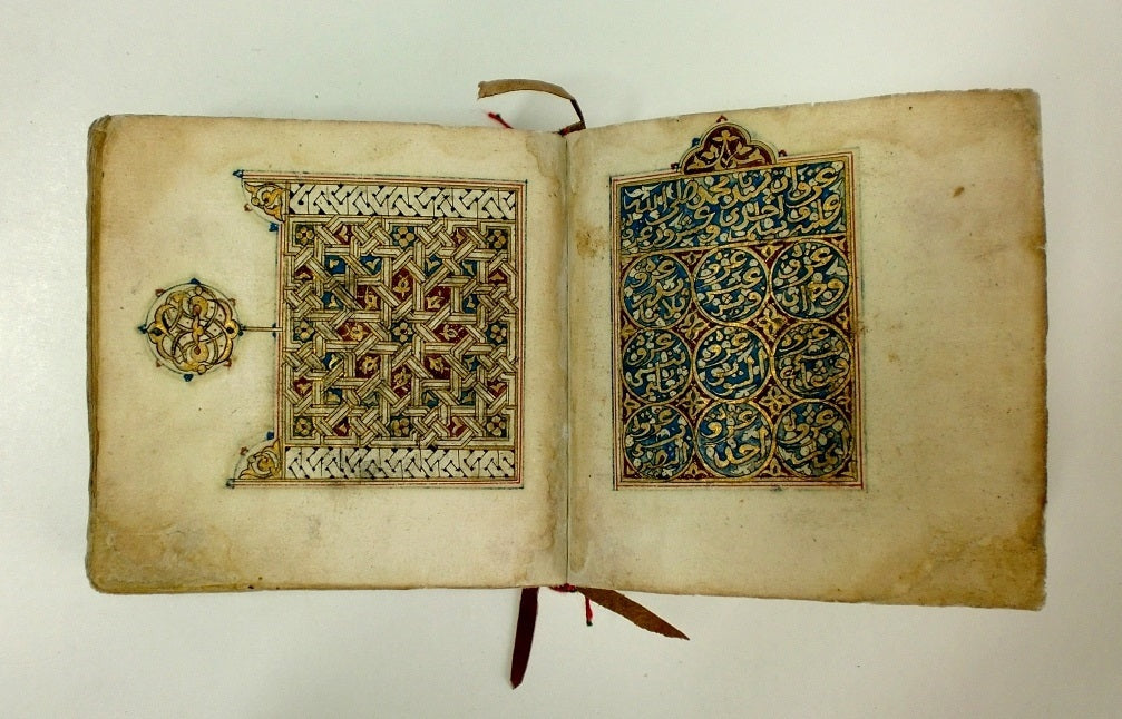 The dating and content of this small and beautiful Islamic manuscript are still awaiting detailed study. It is undoubtedly a religious book, its small size (10 x 11 cm) making it easy to carry and read. Given its purpose of transmitting the divine word, its pages exhibit a balanced combination of calligraphic precision and ornamental profusion.