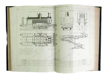 ANNALES DES PONTS ET CHAUSSÉES. MÉMOIRES ET DOCUMENTS RELATIFS A L'ART DES CONSTRUCTIONS ET AU SERVICE DE L'INGÉNIEUR; LOIS, ORDONNNANCES ET AUTRES ACTES CONCERNANT L'ADMINISTRATION DES PONTS ET CHAUSSÉES. Carilian-Goeury Libraire-Éditeur, Paris, 1831. Mémoires et Documents, 59 vols. Lois et Ordonnances, 28 vols. Planches, 7 vols. Some volumes are bound in Dutch, others are paperback.