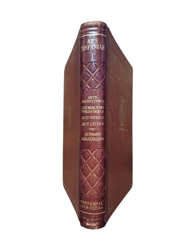 Editorial Plus Ultra, Madrid, 1947. 371 pages. Profusely illustrated in black and white and color. Bound in publisher's guaflex; with dust jacket. Handwritten annotation on the flyleaf. Prehistoric Art: Paleolithic Art. The Art of the Aurignacian Period. The Art of the Solutrean Period. The Art of the Magdalenian Period. Rock Art of the Spanish Levant. Spanish Art from the Neolithic to the Bronze Age. The Balearic Culture of the Bronze Age. Punic and Greek Colonizations. Iberian Art: General Characteristics. Iberian Architecture. Iberian Sculpture. Iberian Applied Arts. The Art of the Celtic Tribes.