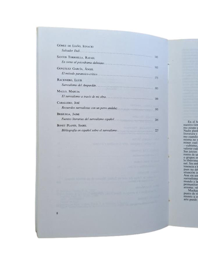 Madrid. Cátedra, 1983. Cover, 230 pages. - Illustrations. - "Surrealist Painting: Stages and Problems," by Antonio Bonet. - "A Life Panorama of Surrealism," by Eduardo Westerdahl. - "The Artistic Theory of Surrealism," by Francisco Calvo Serraller. - "Surrealism and Machine: Between Metaphor and Object," by Víctor Nieto. - "The Surrealist City," by Juan Antonio Ramírez. - "The Surrealists and Cinema," by Emilio Sanz de Soto. - "Surrealism and New York Painting: 1939-1946," by Juan Manuel Bonet. - "Miró's Rooted Surrealism," by Georges Raillard. Paperback.