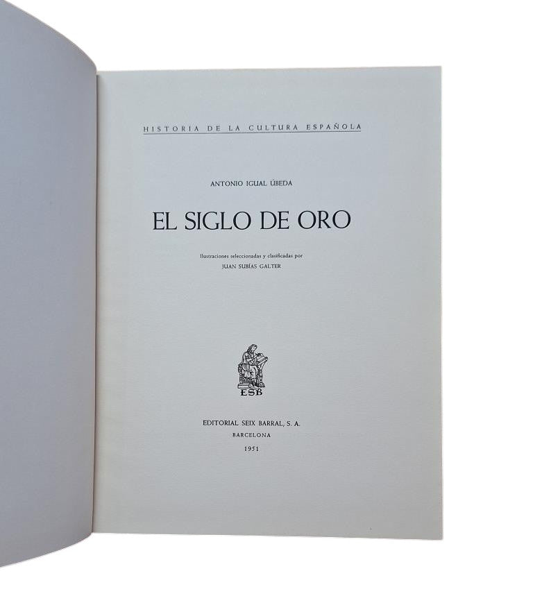 Barcelona. Editorial Seix Barral, 1951. Cover, 652 pages. Profusely illustrated work. Illustrations selected and classified by Juan Subías Galter. Carefully produced edition. - The Government. - The Material Environment. - The Spiritual Environment. - The Geniuses. - The Symbols. Tears on the dust jacket. Cloth with dust jacket.