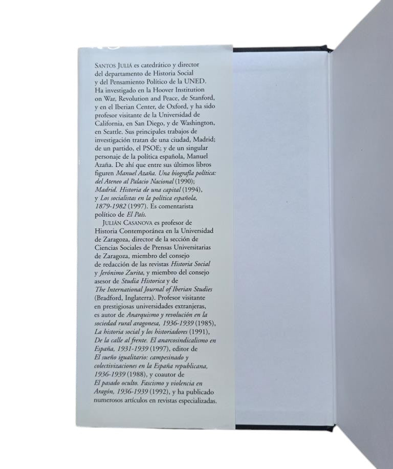 Madrid. Temas de Hoy, 1999. Cover, 431 pages.- From war against the invader to fratricidal war, by Santos Juliá.- Rebellion and revolution, by Julián Casanova.- May 1937-April 1939, by Josep M. Solé i Sabaté and Joan Villaroya.- Repression in the post-war period, by Francisco Moreno.- Hardcover with dust jacket.