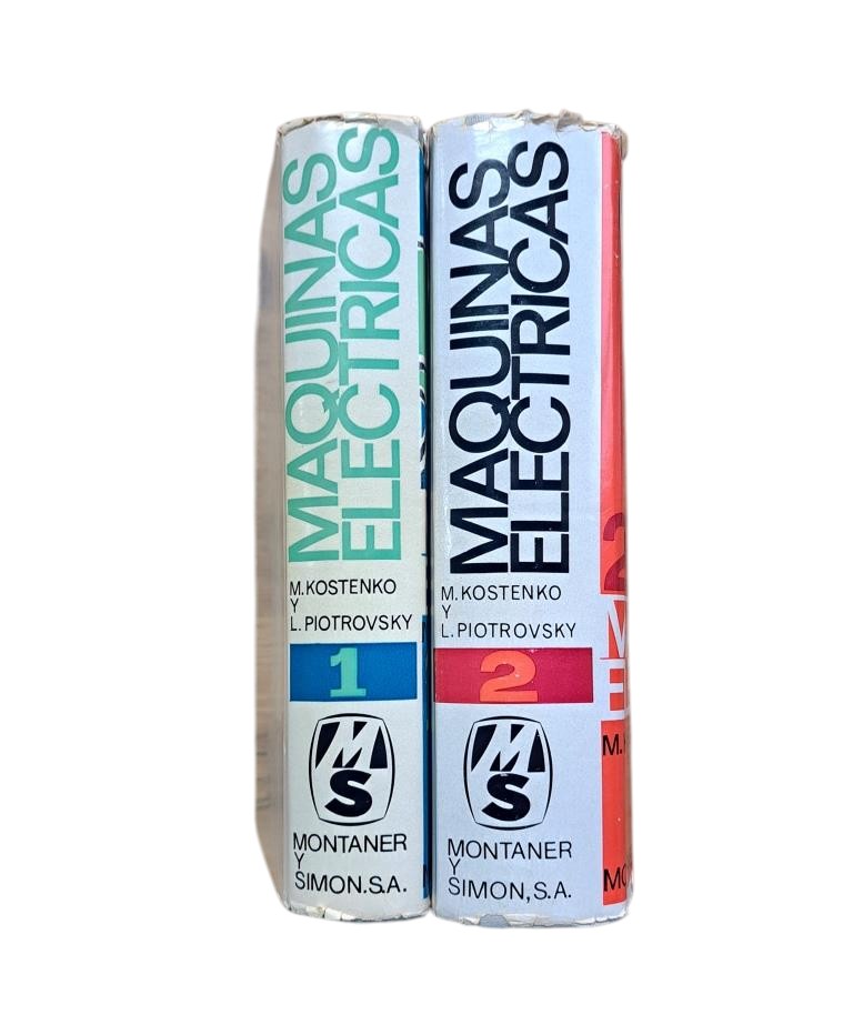Barcelona. Montaner y Simón, 1968. Volume 1: XVI + 522 pp. + Volume 2: XVI + 714 pp. Figures interspersed throughout the text. Stamped signature of the previous owner. Direct current machines.- Transformers.- Alternating current machines. General considerations.- Synchronous machines.- Induction machines.- Some pencil underlining. Cloth binding with dust jacket.