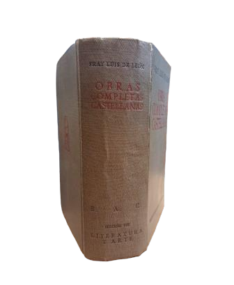 Madrid. BAC, 1944. Title page, XXXVI + 1694 pages. Revised and annotated edition by Félix García, OSA.- Song of Songs.- The Perfect Wife.- On the Names of Christ.- Name of the Lamb.- Exposition of the Book of Job.- Various Writings.- Letters.- Poems.- Appendices: Translations of Virgil, Seneca, Horace, Psalms. Publisher's cloth, worn.