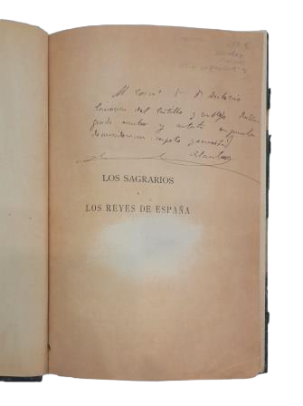 Les successeurs de Rivadeneyra, Madrid, 1898 et 1899. Deux ouvrages reliés en un seul volume, tous deux dédiés par l'auteur. Les tabernacles et les rois d'Espagne : 92 pages + illustrations. L'Alcázar de Séville : 97 pages + photographies. Reliure demi-cuir ; usée.