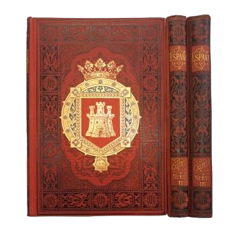 Établissement typographique de Daniel Cortezo, Barcelone, 1885. Volume 1 : XXXII + 398 pages. Volume 2 : XVII + 432 pages. Volume 3 : IX + 508 pages. Photogravures de Meisenbach et Gómez Polo. Héliographies de Thomas. Cartes à collectionner Xumetra. Dessins à la plume de Martín, Oms et Xumetra. Papier imprimé. Belle édition.