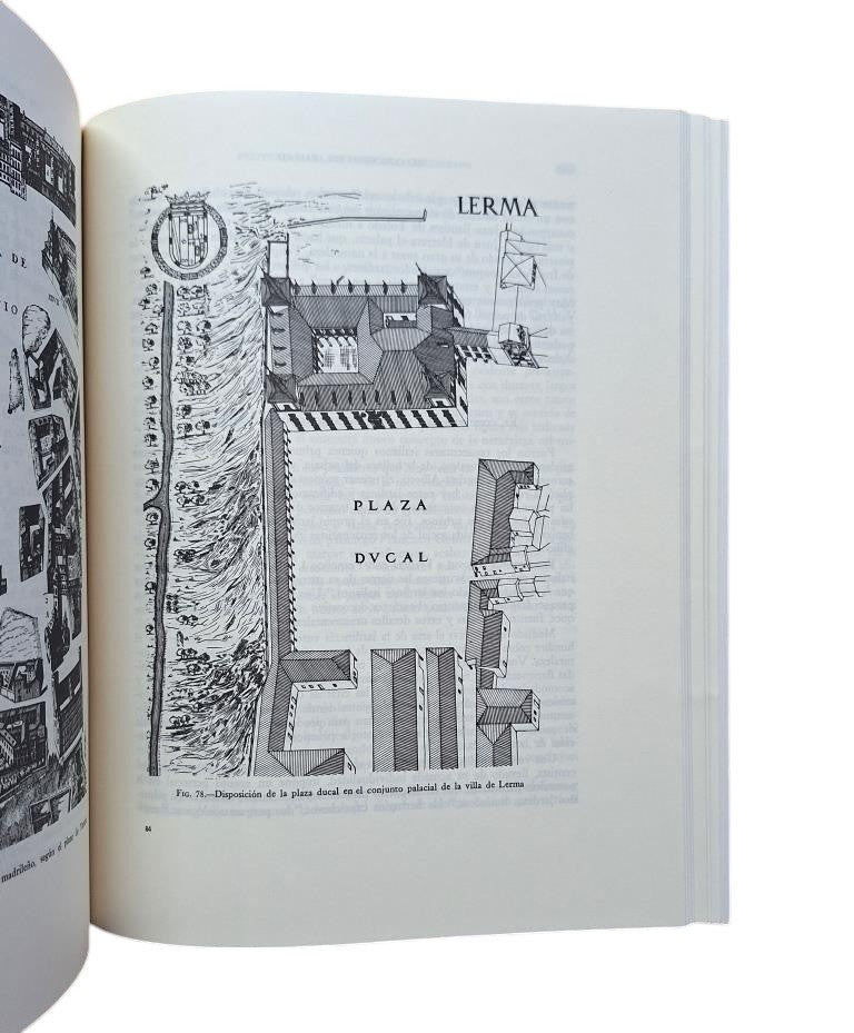 Asociación Amigos del Palacio Ducal. Lerma, 1996. Reproduce la primera edición de Castalia, 1967. Dos volúmenes en rústica. Vol. I.- 406 págs. Vol. II.- Págs. 407 a 712. Ilustraciones y estados plegados.- Importancia política de la villa de Lerma. Creación del conjunto palacial. Descripción y estudio del conjunto palacial.