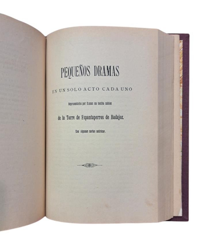 Uceda Hermanos, Badajoz, 1906. VIII + 600 págs. Dedicado por el autor. Encuadernación en media piel. La portada tiene una cinta celo.- La política en España. Benito Arias Montano. El tirano de Godoy. Carta de Lucifer a Pérez Galdós. Poesías.