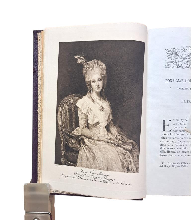 Dedicado por "Villahermosa 1896". Viuda e Hijos de M. Tello, Madrid, 1896. Tomo I.- Los Duques de Villahermosa. 285 págs. Tomo II.- La Duquesa de Villahermosa. 411 págs. Estampas + reproducciones facsimilares de documentos. Buena encuadernación en media piel, rozada en el lomo. Ex-libris estampillado de anterior propietario; dado de baja en biblioteca.