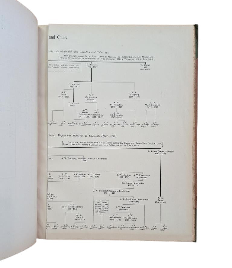 Herder, Freiburg im Breisgau, 1885. Neunzehn Karten in Farbendruck mit Begleitendem Text. 19 mapas impresos en color con texto adjunto. Encuadernación en media tela con puntas / cartoné editorial.